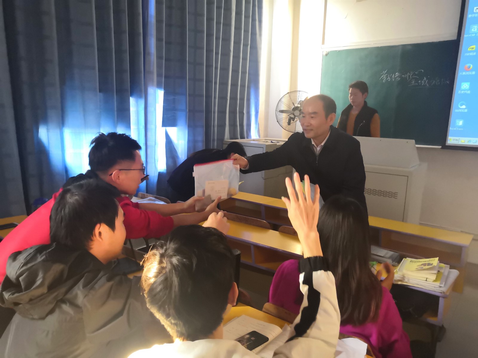 一份礼物,传递爱心与信心。经过精心的策划,学院将精心准备的考研大礼包送给考研学生,礼包中含有一张定制手写明信片、一套考试定制“连中三元”的涂卡套装、一支中性笔、一个橘子、一包茶叶和咖啡。同学们拿到礼包后十分感动,表示真切感受到了全院师生作为他们强大的后盾在为他们加油助威,活动现场温馨感人、气氛高涨。