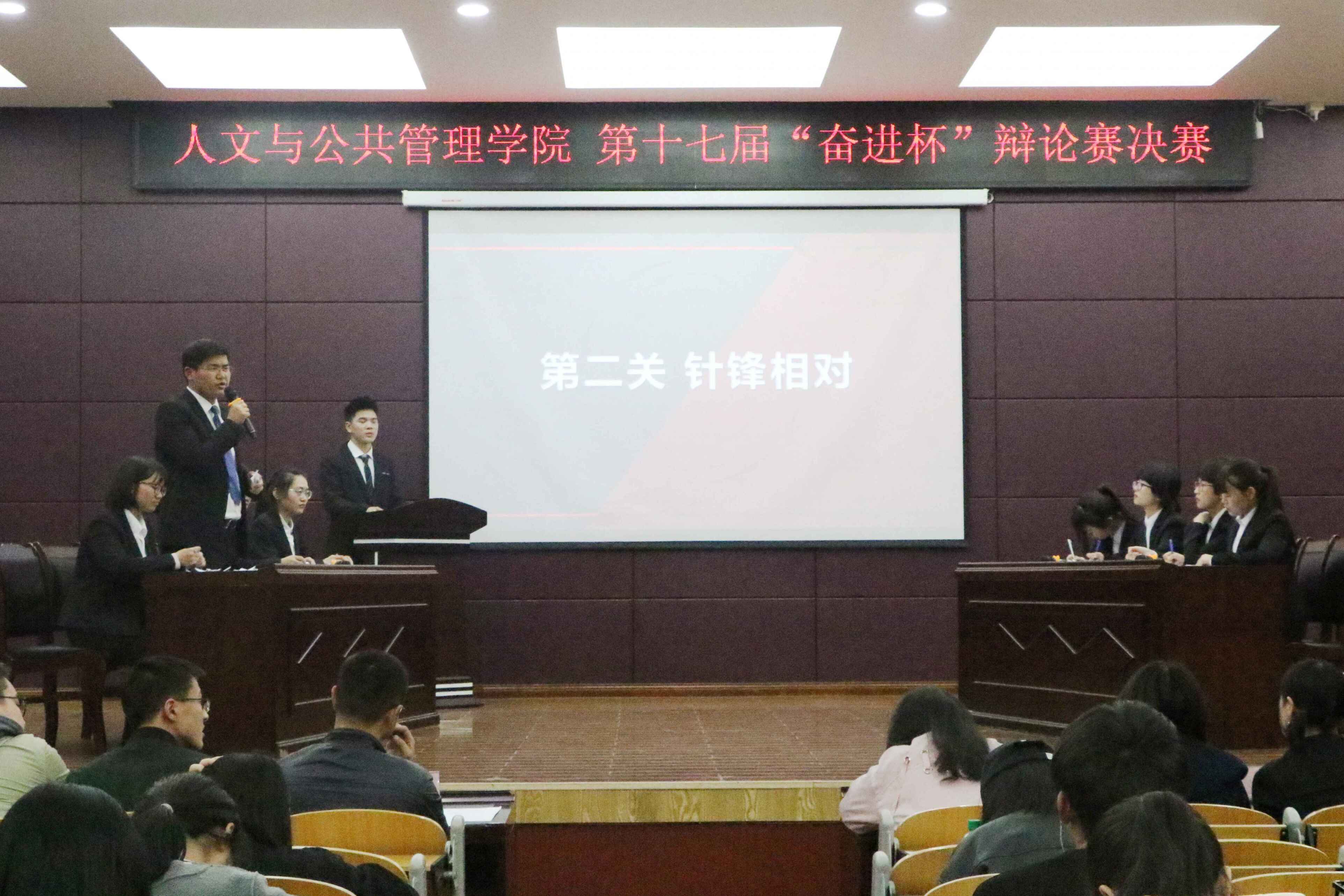 为培养人文院学子的逻辑思维和语言表达能力,丰富学生的课余生活,人文院于4月10日晚在大学生活动中心501音乐厅成功举办第十七届“奋进杯”辩论赛决赛,学院中文系主任孙尊章老师、团委指导老师袁梁和现场观众一同观看了本次比赛。