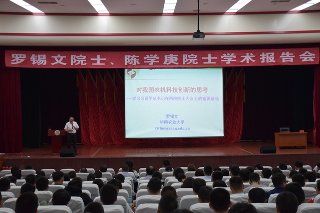 10月9日,中国工程院院士、华南农业大学教授罗锡文和中国工程院院士、石河子大学教授陈学庚来我校进行学术交流。当日下午,两位院士在逸夫报告厅为工学院师生作学术报告,副校长贺浩华、科技处处长游金明、工学院党委书记张高亮及师生代表参加了学术报告会,报告会由副校长刘木华主持。