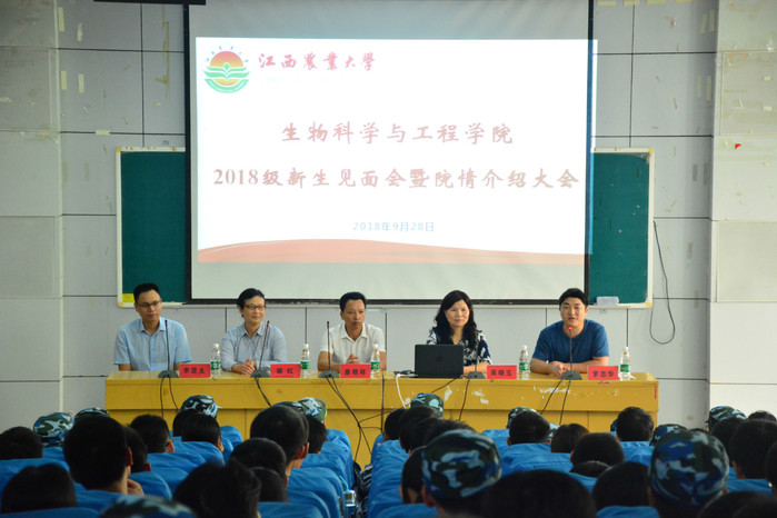 9月28日下午,生工学院新生见面会暨院情介绍大会于二教307教室隆重召开,院党委书记廖明祥、院长吴晓玉、院党委副书记罗志华、副院长裴红、副院长李昆太出席本次大会。该院2018级全体新生参加了见面会,大会由院党委副书记罗志华主持。